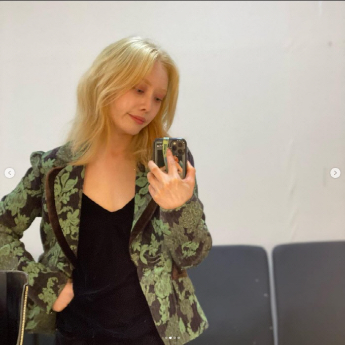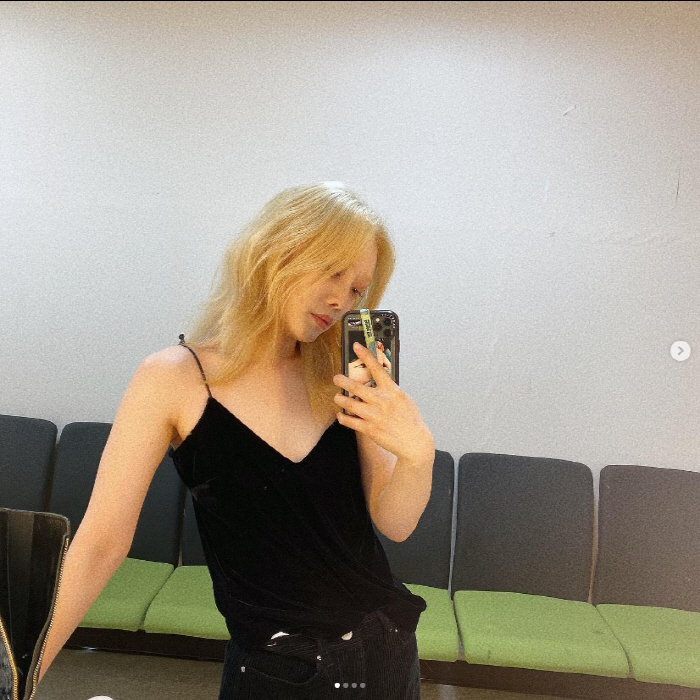 14일 김히어라는 금발머리의 셀카를 공개했다. 검정 민소매티를 입은 김히어라는 시크한 매력을 자아낸다.