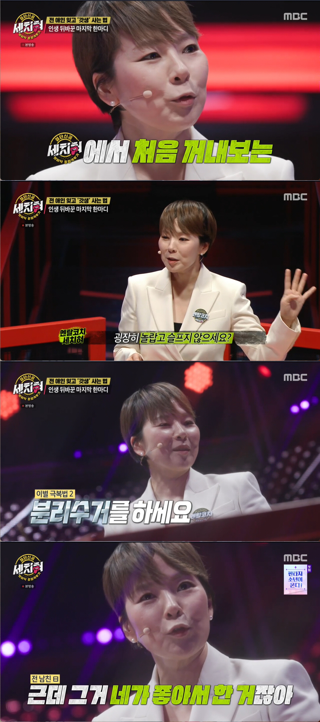 곽정은은 "많은 이별을 겪고 40대 중반을 넘고 보니까 이별한다는 건 상대가 나라는 집에서 짐 빼서 나가는 것이다. 근데 이사할 때 뭐가 나오냐. 온갖 쓰레기와 먼지가 나온다. 저는 몇주 몇달 동안 분리수거하는 작업을 했고 고통에서 풀려날 수 있었다. 이별의 순간은 절대 마음에 두지 마시고 잔인한 말에 오래 속끓이지 않으셨으면 좋겠다"라 조언했다.
