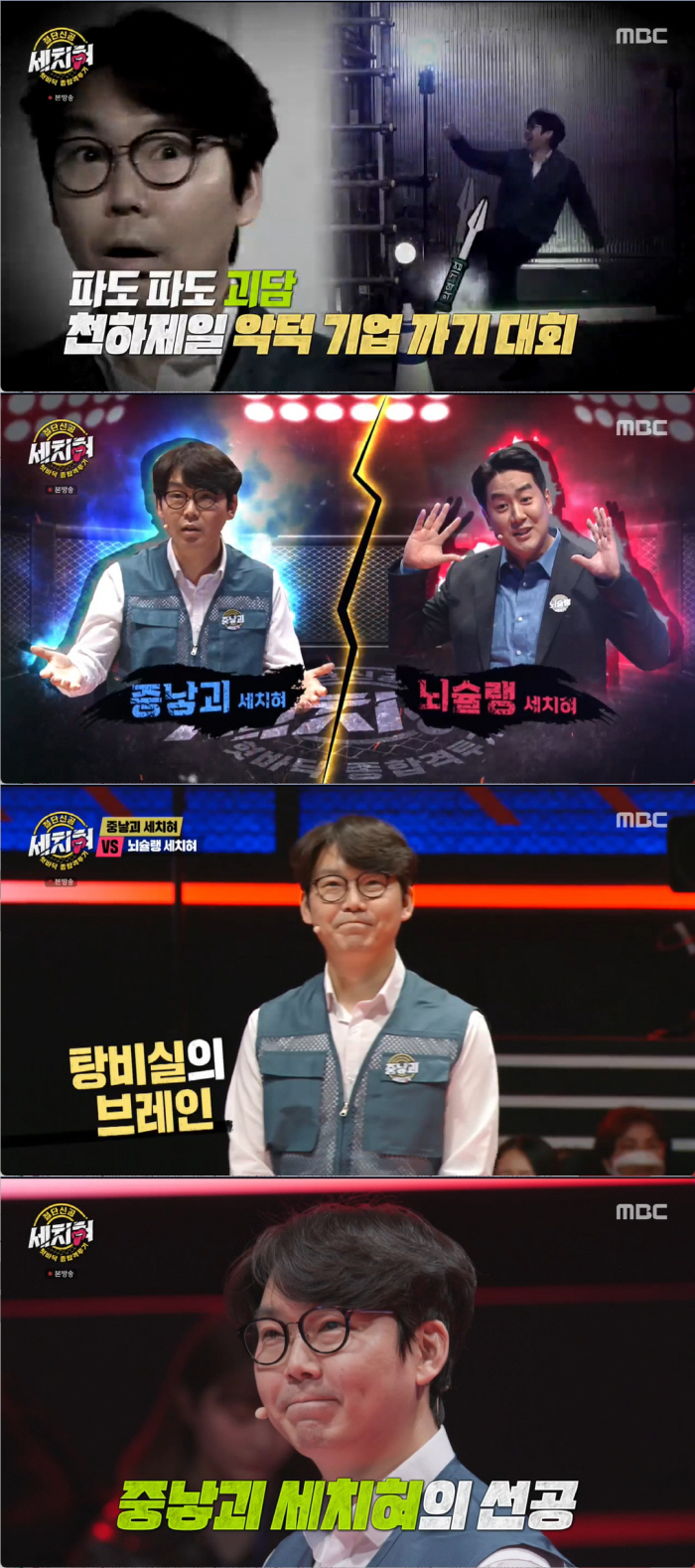 21일 방송된 MBC '혓바닥 종합격투기 세치혀'(이하 '세치혀')는 '중낳괴 세치혀' 이과장이 출격해 거침없는 혓바닥 플레이를 펼쳤다. 중소기업이 낳은 괴물, '중낳괴' 이과장에 모두가 환호했다. 10여년간 겪은 중소기업의 산증인인 하이퍼리얼리즘 이과장은 누적 조회수 5300만 '좋좋소' 영상으로 칸 영화제까지 다녀왔다. 이과장은 "제 세치혀에 가족들의 운명이 걸려있다는 생각으로 하겠다. 제 혀로 두들겨 맞을 거라는 각오를 하셔라"라며 자신감을 보였다.