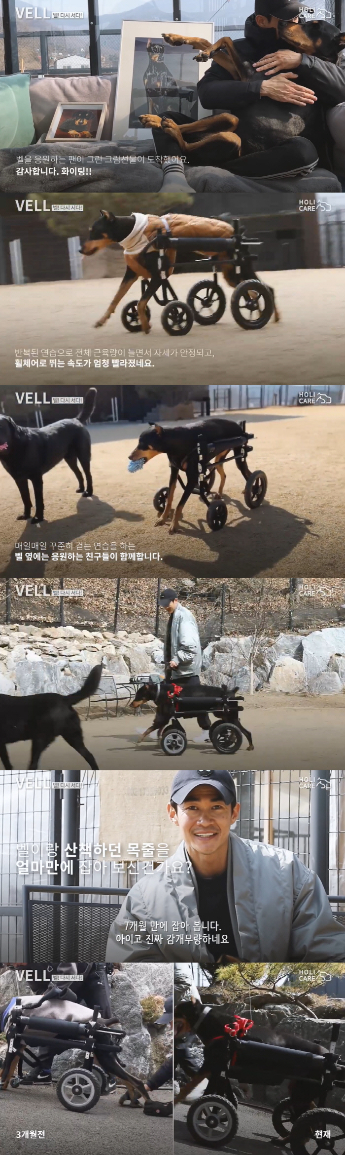 이와 함께 배정남이 공개한 영상에는 벨의 재활훈련기가 담겼다. 지난해 8월 급성 목 디스크로 전신마비 판정을 받은 벨은 수술 후 재활훈련을 통해 전보다 훨씬 나아진 모습으로 감동을 안겼다.