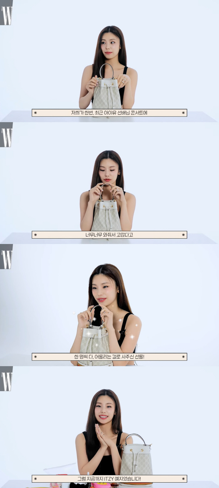 29일 W KOREA 채널에는 'ITZY 예지가 아이유 선배님께 받은 소중한 가방! 그 안에 뭐가 들었게?'라는 제목의 영상이 공개됐다.