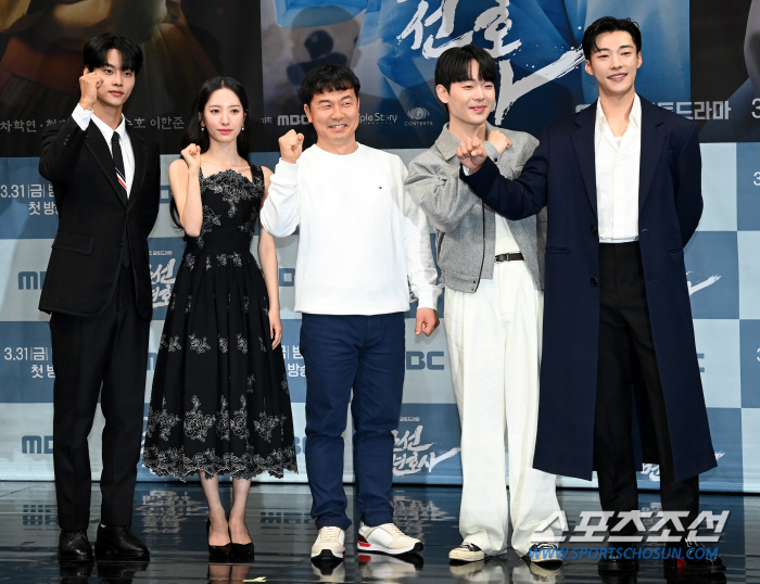 MBC 새 금토드라마 '조선변호사'의 제작발표회가 31일 MBC 신사옥에서 열렸다. '조선변호사'는 부모님을 죽게 한 원수에게 재판으로 복수하는 조선시대 변호사 '외지부'의 이야기를 그린다. 진정한 복수는 의로운 일을 할 때 가치 있는 것임을 보여주며 백성을 위하는 진짜 변호사로 성장해가는 유쾌, 통쾌한 조선시대 법정 리벤지 활극 드라마다. 차학연 김지연 김승호 감독 이규성 우도환이 포토타임을 갖고 있다. 허상욱 기자wook@sportschosun.com/2023.03.31/
