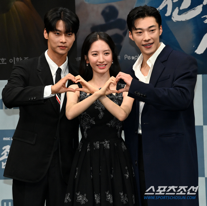MBC 새 금토드라마 '조선변호사'의 제작발표회가 31일 MBC 신사옥에서 열렸다. '조선변호사'는 부모님을 죽게 한 원수에게 재판으로 복수하는 조선시대 변호사 '외지부'의 이야기를 그린다. 진정한 복수는 의로운 일을 할 때 가치 있는 것임을 보여주며 백성을 위하는 진짜 변호사로 성장해가는 유쾌, 통쾌한 조선시대 법정 리벤지 활극 드라마다. 차학연 김지연 우도환이 포토타임을 갖고 있다. 허상욱 기자wook@sportschosun.com/2023.03.31/