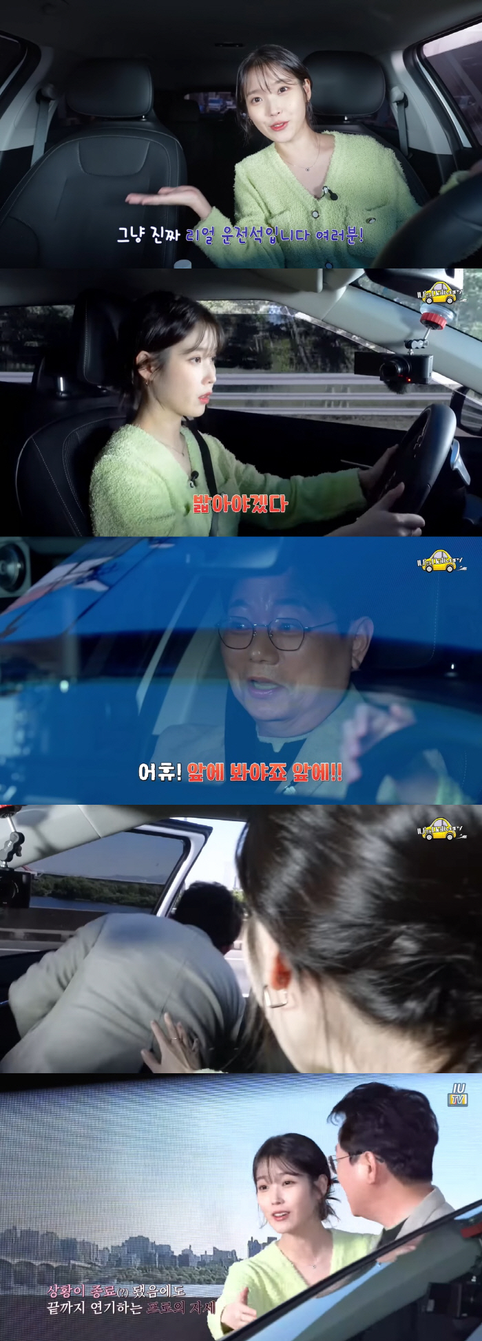 한문철은 아이유와 대화를 하면서 "앞을 봐야 한다", "앞차랑 가깝다. 거리 유지를 해야 한다. 나랑 얘기를 하느라고 앞을 못 봤다. 거리를 둬야한다"고 지적하며 아이유의 운전에 불안한 모습을 보였다.