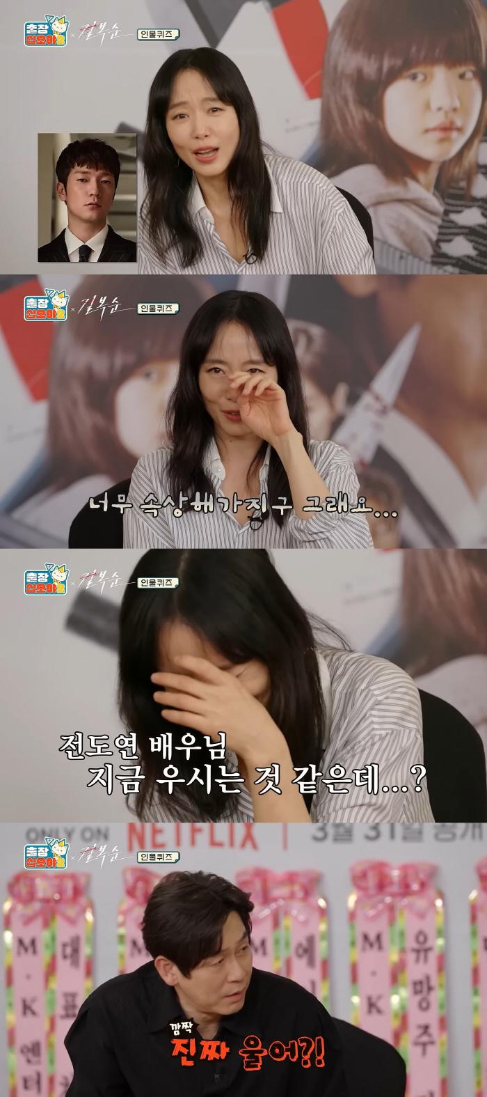 결국 전도연은 "나부터 하겠다"고 말했고, 지켜보던 설경구는 "진짜 울어"라며 웃어 눈길을 끌었다.
