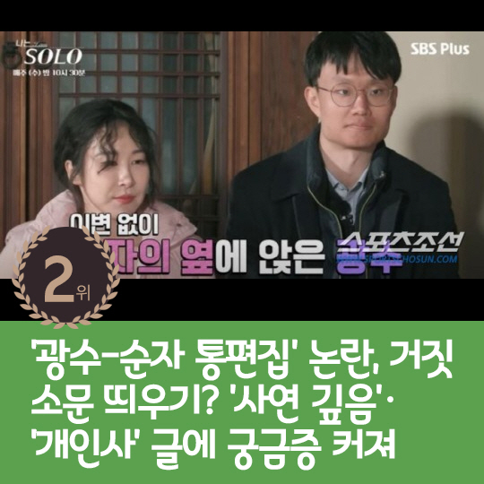 2위 : '광수-순자 통편집' 논란, 거짓 소문 띄우기? '사연 깊음'· '개인사' 글에 궁금증 커져