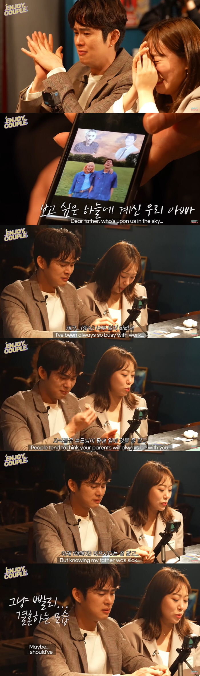 지난 2일 임라라, 손민수의 유튜브 채널 '엔조이커플'에는 '하늘에 계신 아빠에게 청첩창 보내는법'이라는 제목으로 영상이 게재됐다.