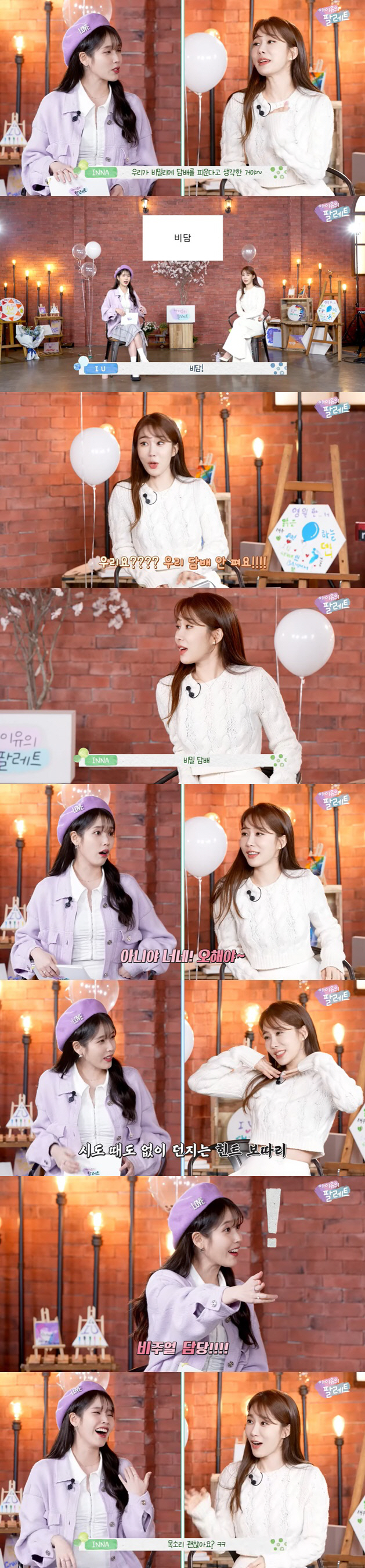 [스포츠조선닷컴 정유나 기자] 가수 겸 배우 아이유가 절친인 배우 유인나와 '신조어 퀴즈'를 맞춰보는 시간을 가졌다.