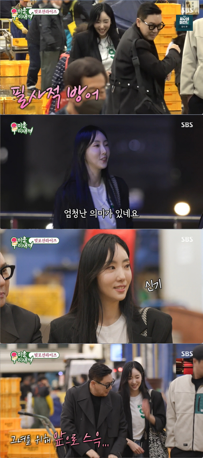 새벽부터 분주한 수산시장에는 전국 각지에서 모인 생선들 경매가 한창이었다. 유리는 "여기는 한창이다"라며 여기저기를 구경했다. 경매사랑 친하다는 이상민은 수신호에 대해서도 설명했다. 물이 튀는 것을 막아주고 시끄러운 주변에 귓속말을 하게 되는 수산시장 데이트는 설레임을 자아냈다.