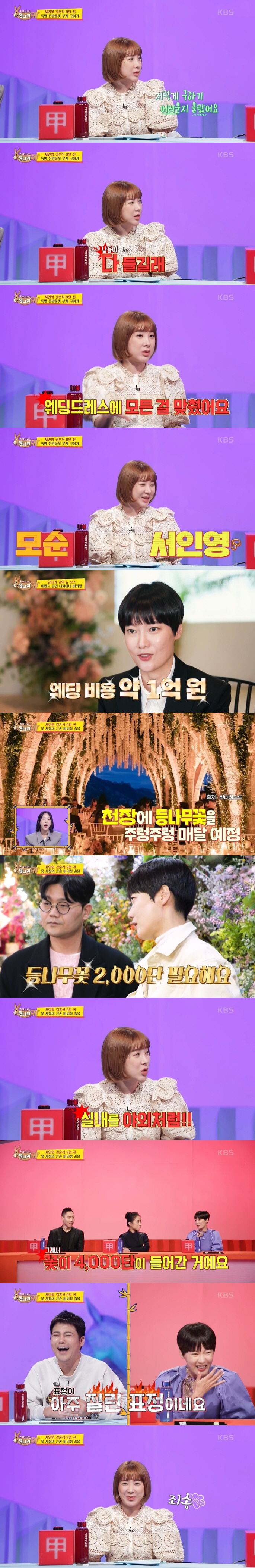 무엇보다 비키정은 서인영이 원했던 은방울꽃 부케에 난항을 보였다. 구하기 쉽지 않은 은방울꽃 부케는 3주 전 미리 주문해야 했고 뒤늦게 이를 구하려던 비키정은 꽃집 여러곳을 돌며 문의했지만 은방울꽃을 찾기 어려웠다. 이를 본 서인영은 "저렇게 구하기 어려운 꽃인지 몰랐다. 다들 들길래"라며 미안한 마음을 전했다. 결국 비키정은 인맥을 동원해 일본에서 들어온 은방울꽃을 공수, 서인영이 원했던 은방울꽃 부케와 '트와일라잇' 예식을 완성할 수 있었다.