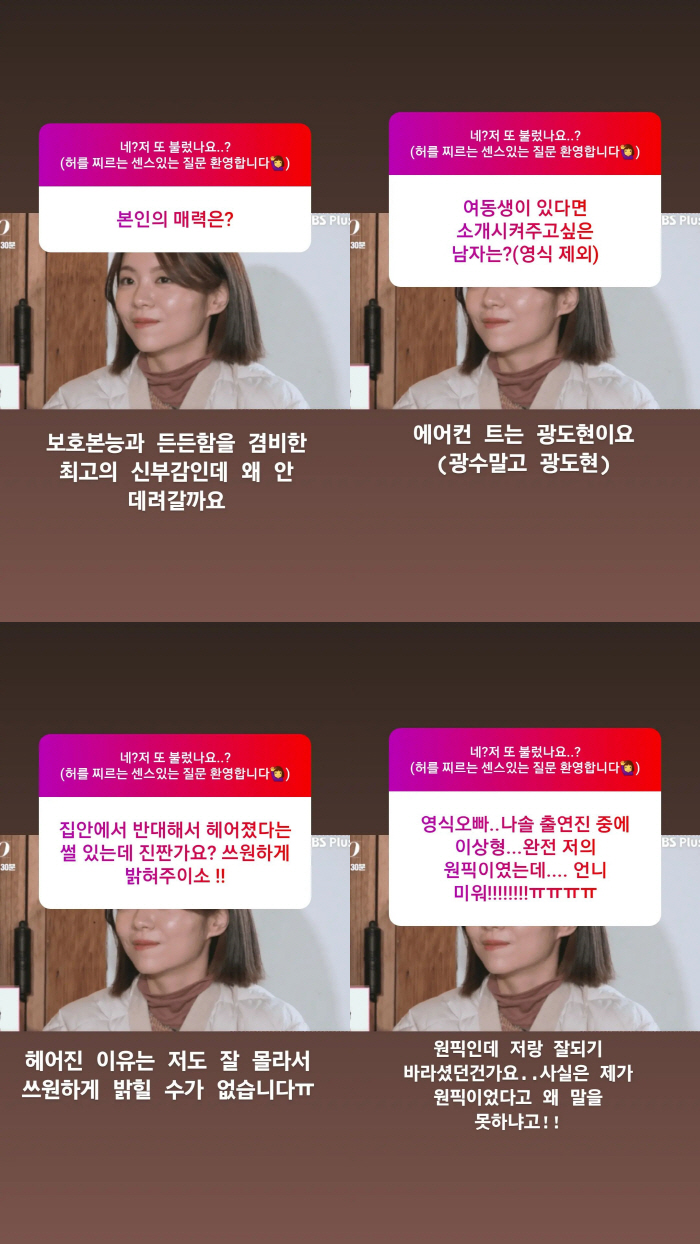 또 "여동생이 있다면 소개시켜주고 싶은 남자는?(영식 제외)"라는 질문에는 "에어컨 트는 광도현이요(광수 말고 광도현)"이라고 답했다.