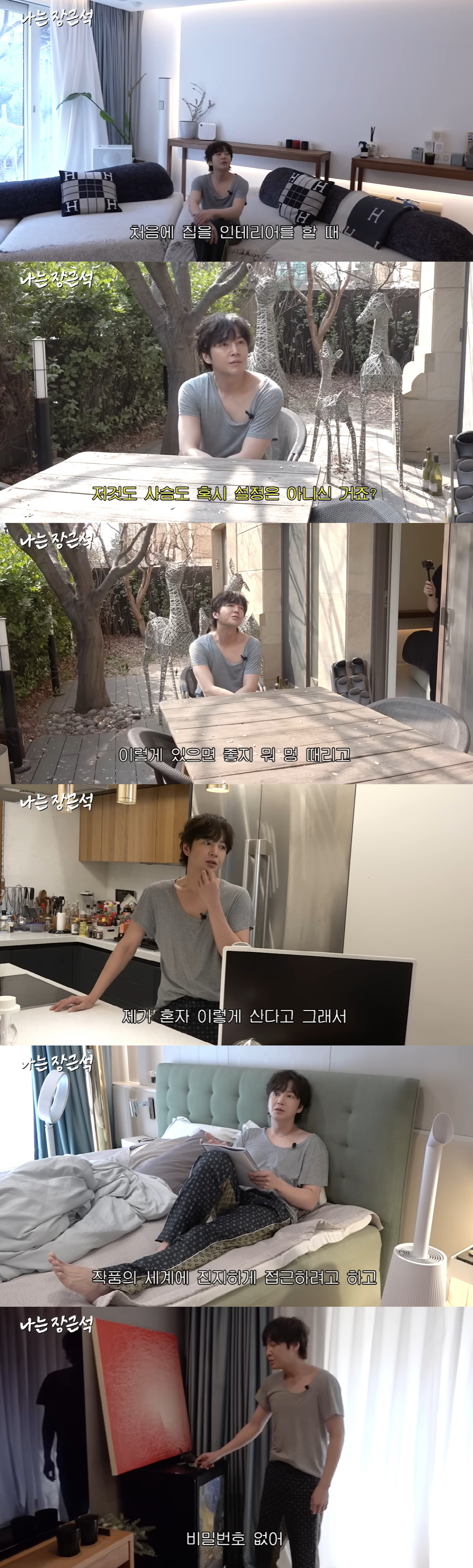 장근석은 하루 중 제일 많은 시간을 보낸다는 침실도 공개했다. 침실 한구석에는 금고가 설치돼 눈길을 끌었다. 그는 "금고를 산 지 7~8년 정도 됐는데 왜 샀는지 모르겠다. 비밀번호도 없다"며 "나도 우리 집에 금고 하나 정도는 있어야지 하면서 샀던 거 같은데 해보니까 부질없다"고 밝혔다.