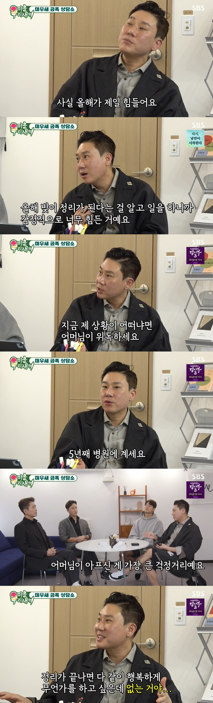 16일 방송된 SBS '미운 우리 새끼'에서는 정신건강의학과 전문의인 양재진, 양재웅 형제에게 상담을 받는 이상민의 모습이 그려졌다.