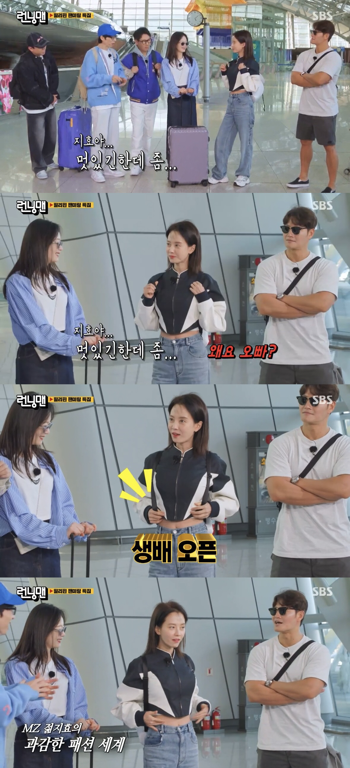 [스포츠조선 안소윤 기자] '런닝맨' 유재석이 송지효의 파격 공항 패션에 당황을 금치 못했다.