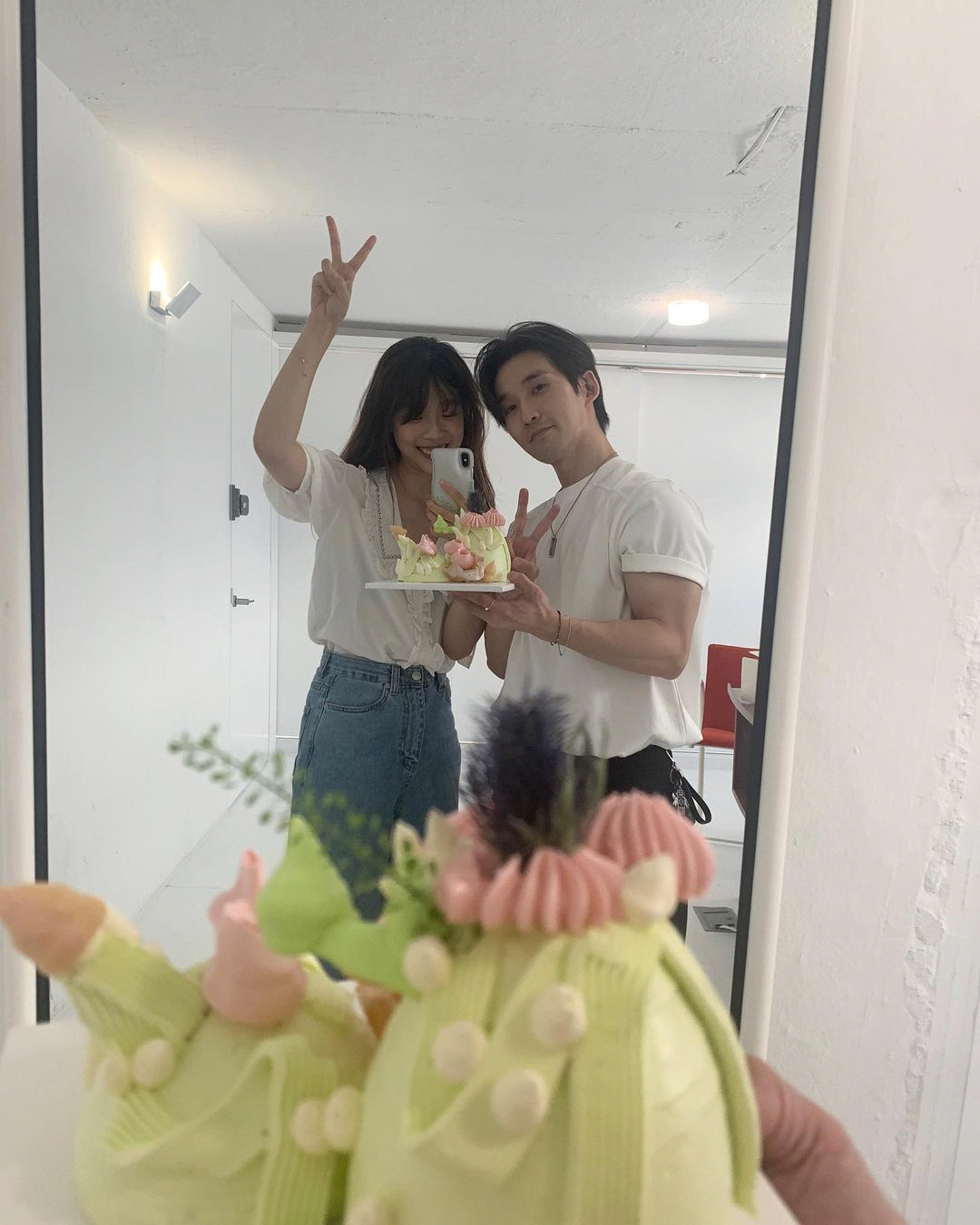 사진 속에는 류덕환과 전수린이 거울을 보며 브이자를 그리는 모습이 담겼다. 특히 류덕환이 들고 있는 케이크 디자인이 유니크해, 시선을 모으고 있다.
