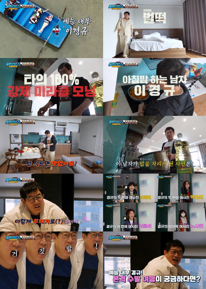 그런가 하면 이경규와 여사친 4인방의 첫 만남 현장도 공개됐다. 신혼여행 이후 처음으로 여자들과 떠나는 여행을 앞두고 긴장한 이경규의 모습이 웃음을 유발하는 가운데, 조혜련, 박미선, 신봉선에 이어 대망의 '3살 누나' 여사친 노사연의 등장으로 아비규환이 된 현장이 담겨 폭소를 자아낸다.