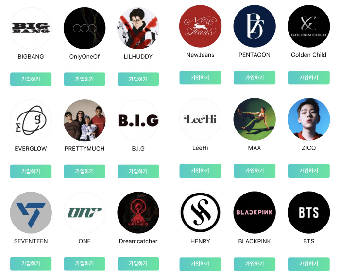 방탄소년단, 세븐틴, 빅뱅, 르세라핌, 뉴진스 등이 입점된 위버스. 위버스 화면 캡처