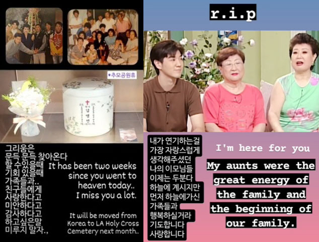 한상진은 지난 8일에도 "내가 연기하는 걸 가장 자랑스럽게 생각해 주셨던 나의 이모님들. 이제는 두 분 다 하늘에 계시지만 먼저 하늘에 가신 가족들과 행복하실 거라 기도합니다. 사랑합니다"라며 추모했다.