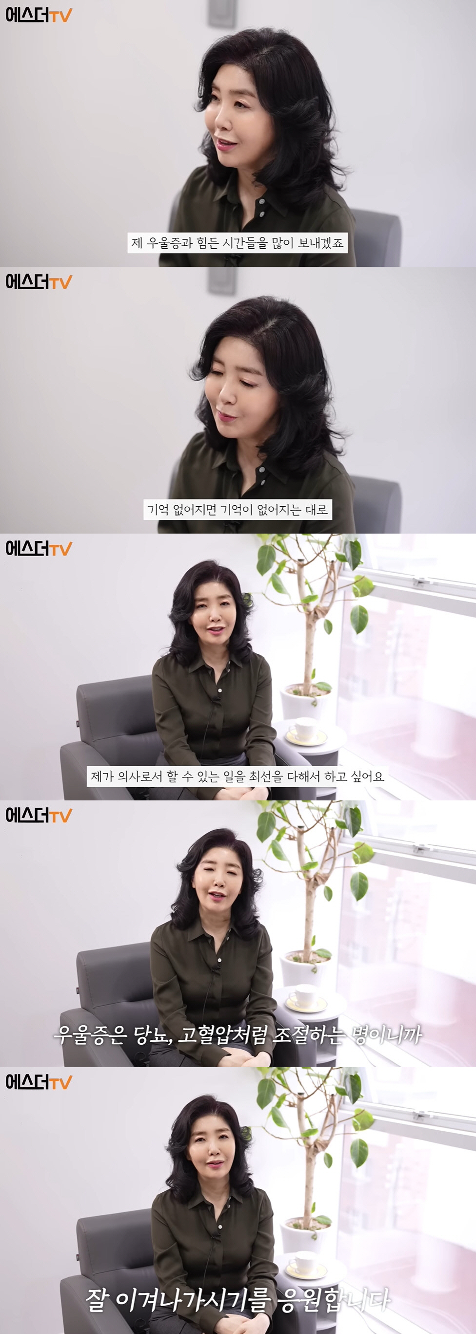 여에스더는 "앞으로도 저는 제 우울증과 힘든 시간을 보내겠지만, 그럴 때는 또 치료 받고 기억이 없어지면 없어지는 대로 적응할 거다"면서 "제가 의사로서 할 수 있는 일을 최선을 다해서 하고 싶다. 우울증 있는 분들은 고혈압, 당뇨처럼 조절할 수 있는 병이니까 약물 꾸준하게 복용하시고 새로운 치료 방법을 적용해서 잘 이겨내시길 응원한다"고 했다.
