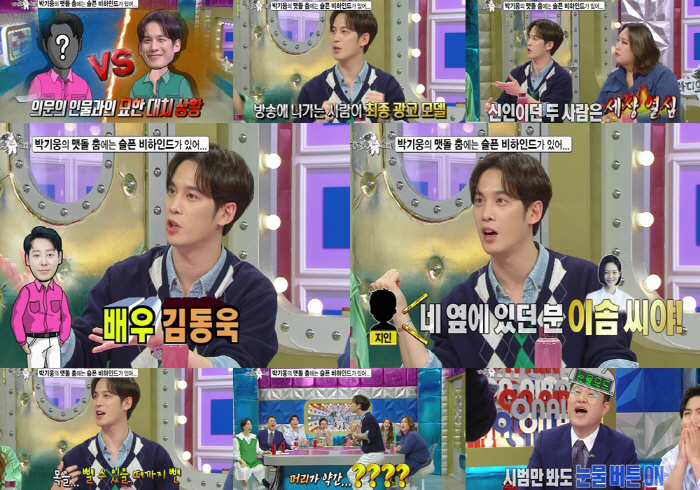 이와 함께 박기웅은 '라스'에서 맷돌 춤을 추는 방법을 공개했다. 그는 "옆에서 보면 춤이 굉장히 격하다"라며 머리가 빠질 것처럼 목을 최대한 많이 뻗어 앞뒤로 움직이는 동작을 선보이며 스튜디오를 초토화시키며 본방송을 향한 궁금증을 끌어올렸다.