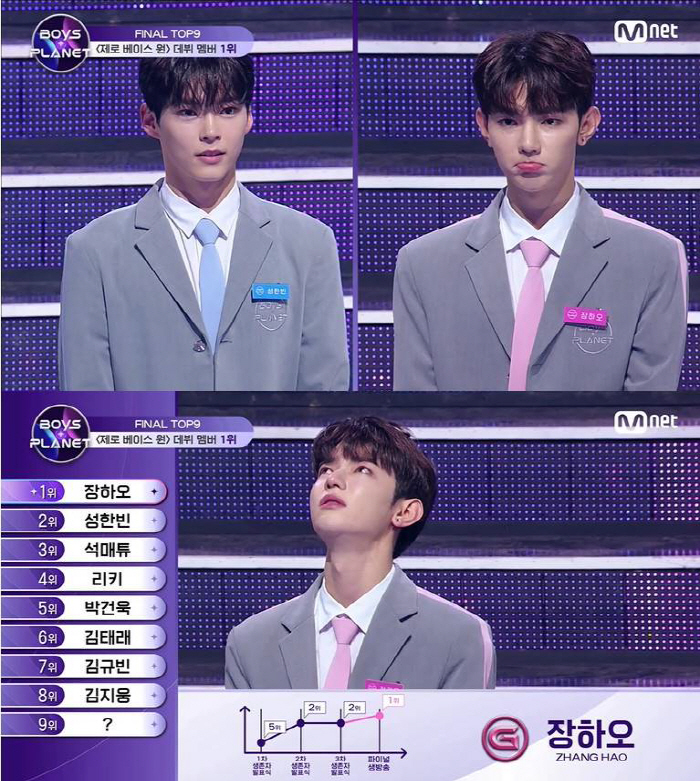 1위는 중국인 연습생 장하오가 차지했다. 장하오는 "이건 꿈이냐"며 눈물을 쏟았다. 그는 "3개월간 응원해주신 스타 크리에이터분들께 감사하다. 제로 베이스 원 멤버로 활동하며 행복을 드리겠다. 초심을 잊지 않겠다. 우리가 얼마나 노력해 여기까지 왔는지 잊지 못할 거다. 소중한 추억이 될 것"이라고 말했다.
