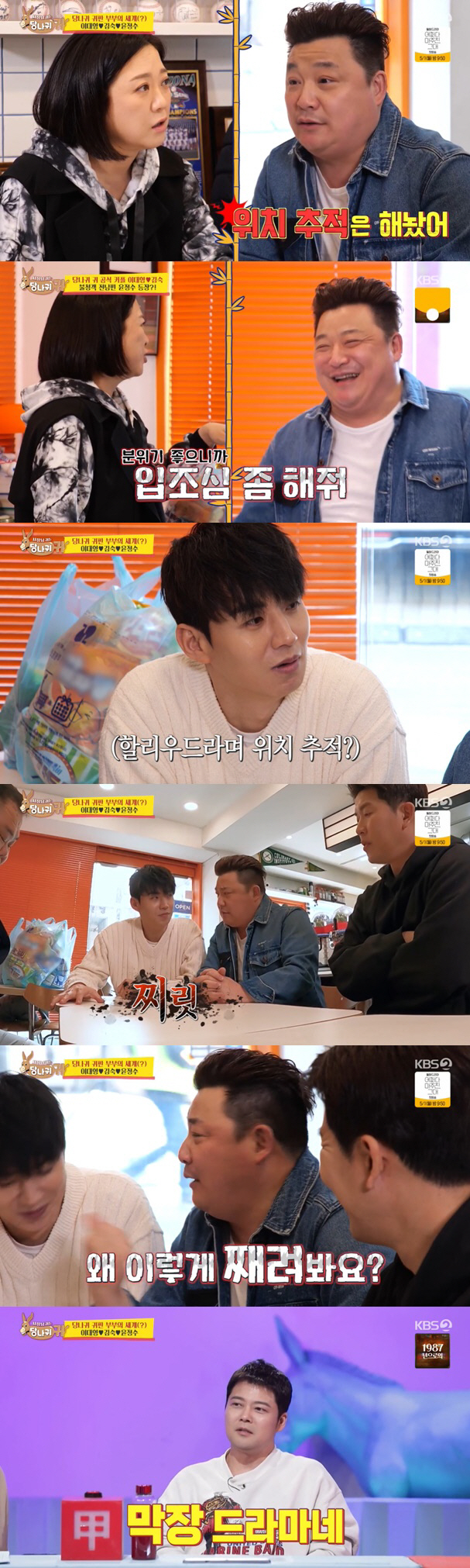 이대형은 김숙의 전 가상 남편 윤정수의 등장에 달갑지 않은 반응을 보였다. 가상 부부 시절의 이야기를 즐겁게 나누는 두 사람의 모습에 질투심이 폭발한 이대형은 윤정수 쪽을 노려봤고, 윤정수 역시 "가게에 오소리가 한 마리가 있네"라면서 "왜 이렇게 째려봐요?"라 견제에 나서 폭풍 전야 같은 긴장감을 자아냈다.