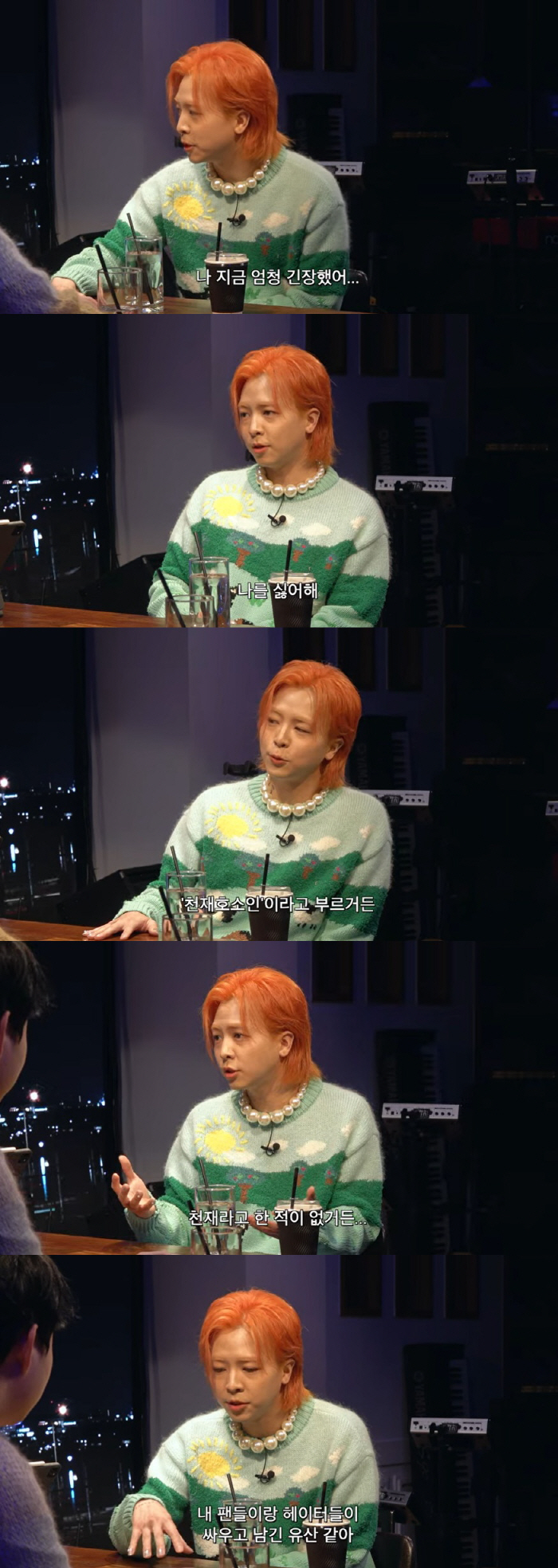 지올팍은 최근 유튜브의 알고리즘 선택을 받아 가장 핫한 싱어송라이터가 됐다. 지올팍은 "그래서 내 노래가 싫다. 핸드폰을 켜면 내 콘텐츠가 보인다. 지긋지긋하다. 바로 스킵한다"고 밝혔다. 지올팍은 "그래서 시청자들을 이해한다. 사실 이렇게까지 될 줄은 몰랐다. 아직도 잘 모르겠다"며 "근데 요즘에는 많은 사람들이 나를 싫어한다. 근데 그게 좋다. 그들은 '천재호소인'이라 부른다. 천재호소인은 천재로 보이고 싶은 사람을 뜻한다. 근데 나는 한 번도 나보고 천재라고 한 적이 없다. 이 별명이 싫었는데 이제 그 별명이 좋다. 내 팬들과 헤이터들이 싸우고 남긴 유산 같다"고 솔직하게 털어놨다.