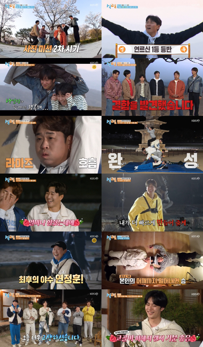 [스포츠조선 고재완 기자] 찰떡 호흡을 자랑한 '1박 2일'의 봄 출사 여행기가 일요일 저녁을 웃음으로 물들였다.