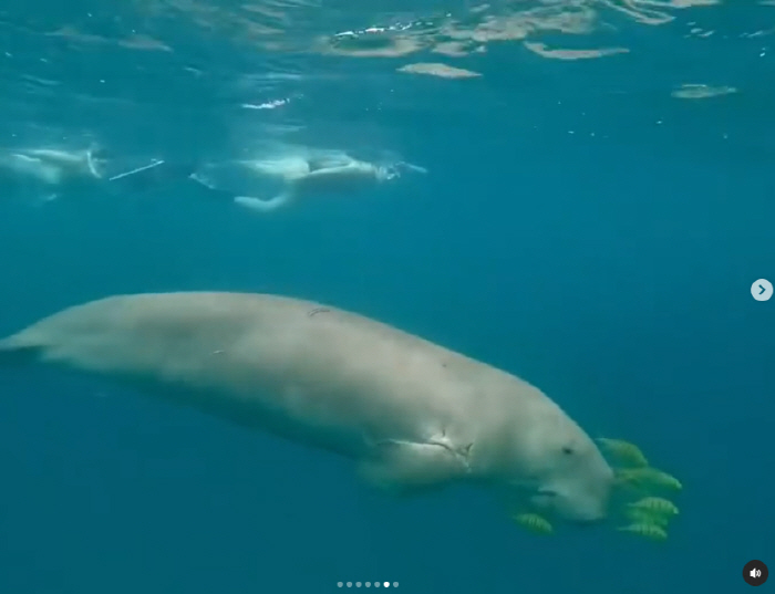 인어같은 자태로 바다 속을 자유자재로 누비던 한효주는 거대 듀공과 나란히 수영하는 모습도 보여줬다.