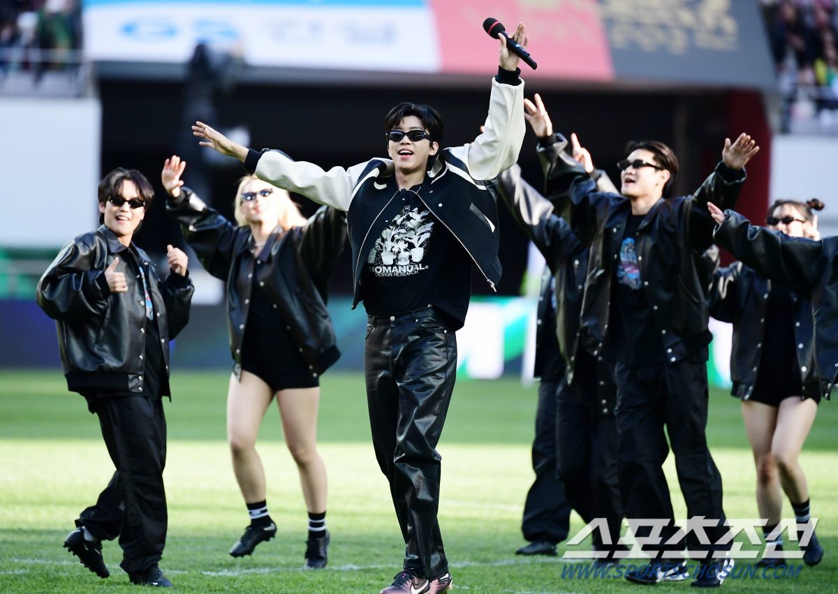 8일 오후 서울 상암동 서울월드컵경기장에서 FC 서울과 대구 FC의 K리그1 2023 6라운드 경기가 열렸다. 하프타임 때 축하공연을 펼치고 있는 임영웅. 상암=송정헌 기자songs@sportschosun.com
