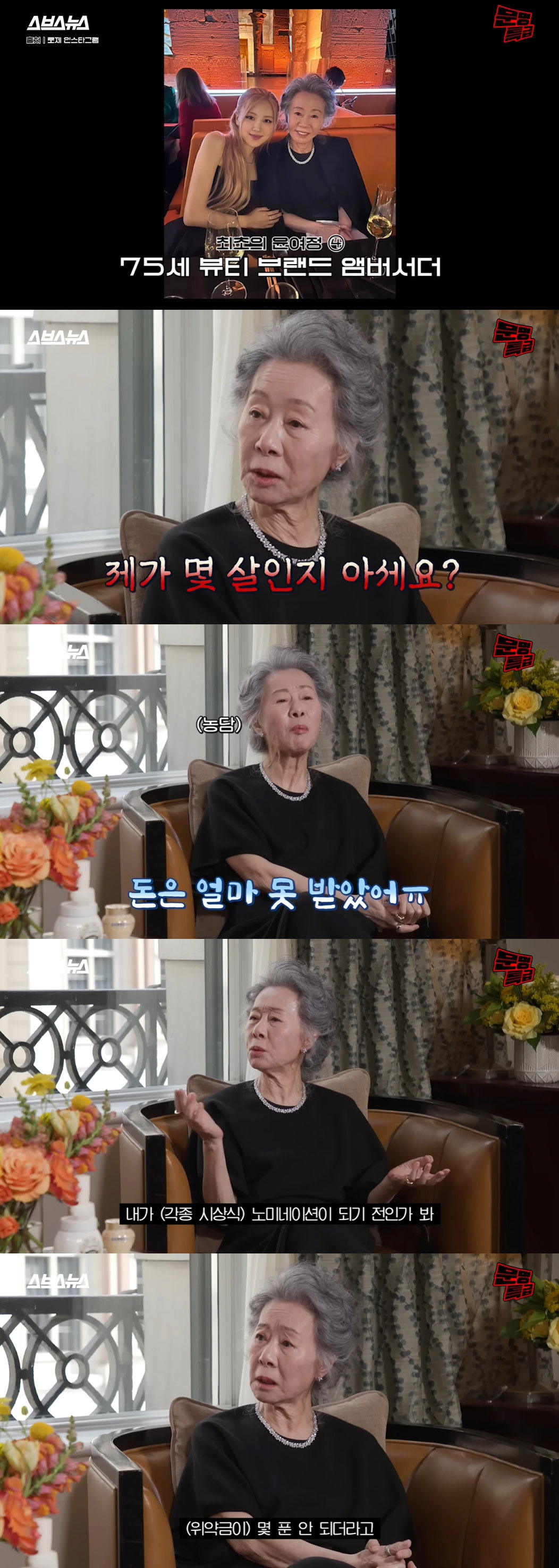 이와 관련 윤여정은 "그거 돈을 얼마 못 받았어"라며 "(오스카 여우조연상) 노미네이션 되기 전인가봐. 찍는데 내가 너무 힘들어서 '나 이거 못 찍겠다' 그랬더니, 취소하면 계약금 3배를 내야 된다더라. 그래서 얼마냐고 했는데 몇 푼 안 됐더라고. 그래서 '이거 왜 이렇게 싸?' 했더니, '선생님 노미네이션 되기 전이라서'라고 하더라"며 솔직한 입담을 자랑했다.