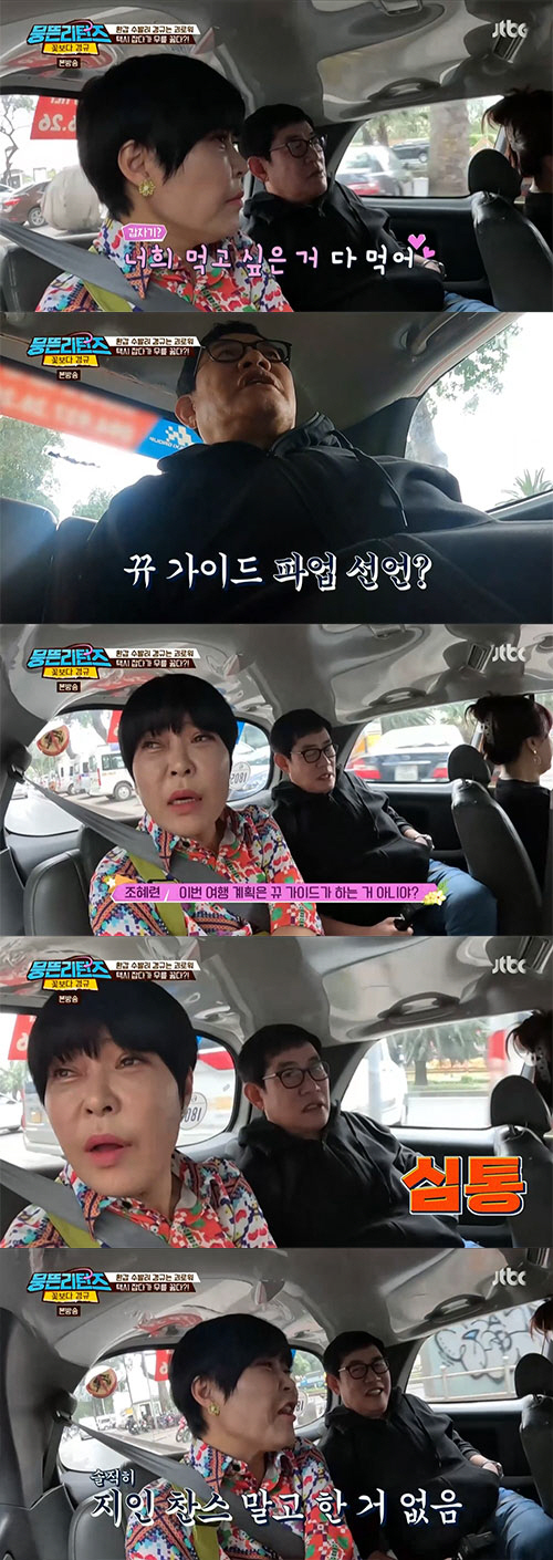 이때 이경규는 음식과 스케줄을 물어보는 여사친들에게 "너희 먹고 싶은 거 먹어"라고 시큰둥하게 이야기했고, 조혜련은 "오빠가 가이드를 해야하는 거 아니냐. 어제 오빠 지인찬스 말고 한 게 뭐있냐"라고 지적했다.