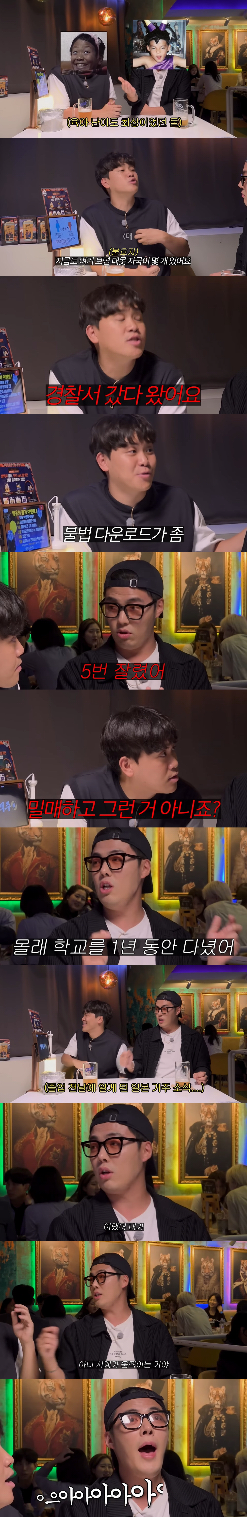 이후 두 사람의 불효 대결을 펼쳤다. 오킹은 "저는 일단 중학교 1학년 때 경찰서 다녀왔다"면서 "옛날 이야기다. 이미 죗값을 치렀다"고 했다. 그는 "어렸을 때 불법 다운로드가 좀 성행한 적이 있었다. 안 잡히는데 제가 과하게 했나보다"면서 "영화를 너무 좋아하니까 어린 마음에 그랬다가 저작권 신고가 들어왔다"고 밝혔다. 오킹은 "제가 그때 왔던 14명 중 제일 어려서 봐줬다. 그 뒤로 진짜 안 한다"면서 다행히 선처 받았던 어린 시절을 떠올렸다.