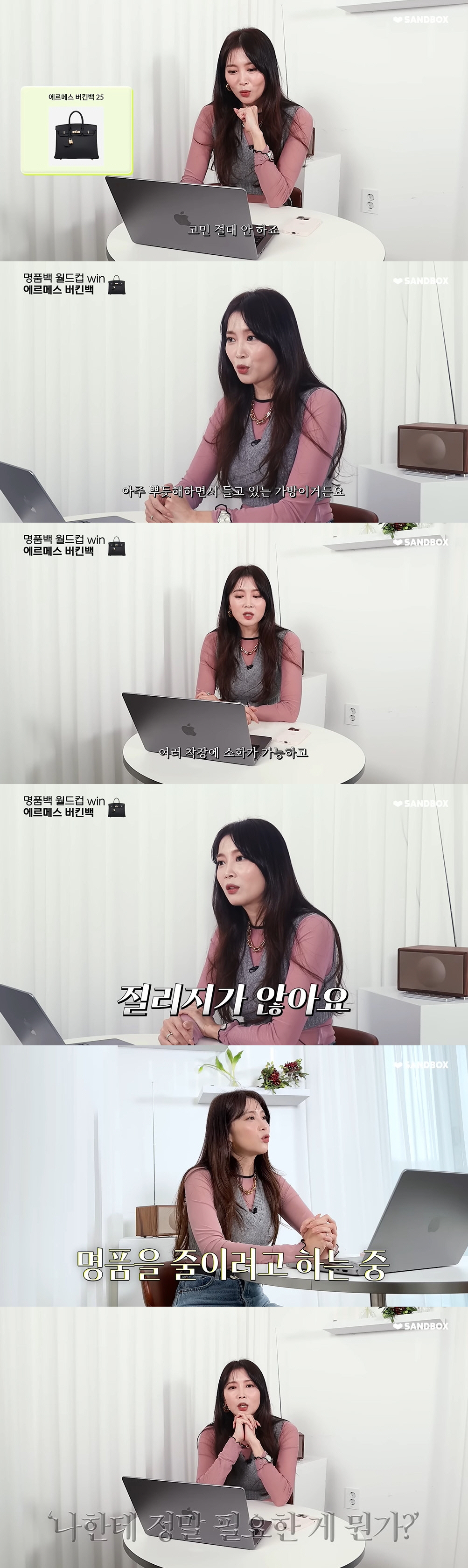 오윤아는 "특히나 요즘 백들이 금액대가 너무 비싸지니까 그럴바에 돈을 모아서 H사 사는 게 좋을 거 같다"고 했다.