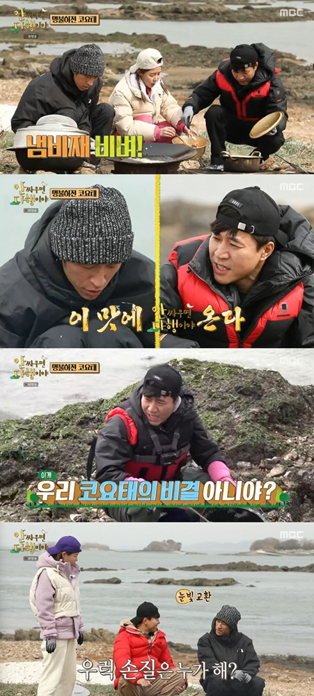 이어 성공적인 요리와 함께 아침 식사를 마친 코요태는 본격적으로 해루질을 시작했다. 고가의 말똥성게를 다수 발견한 코요태는 흥분을 감추지 못 했고, 김종민은 신지에게 "내가 캘 테니까 넌 찾아. 그게 그룹 아니야? 이게 코요태의 비결 아니야?"라며 끈끈한 팀워크를 다졌다.