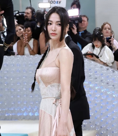 송혜교는 이날 멧 갈라에서 코르셋 디자인의 연핑크빛 드레스를 입고 등장해 스포트라이트를 받았다. 특히 과감한 히메컷과 함께 긴 머리 땋아 내린 동양적인 헤어스타일로 전 세계 이목을 사로잡았다.