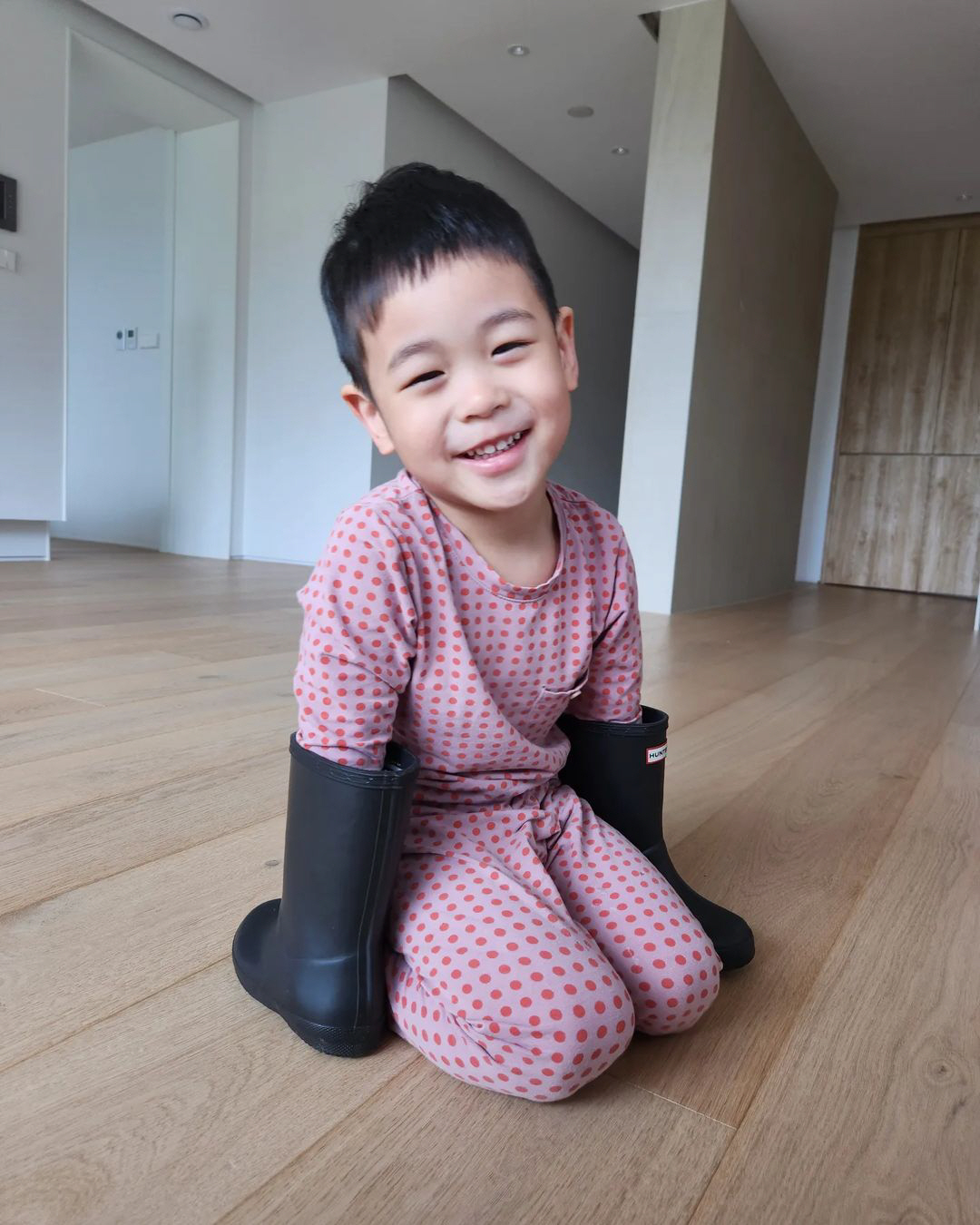 강경준은 1일 "장화 신은 고양이"라는 글과 함께 한 장의 사진을 게재했다. 공개된 사진 속에는 엄마 장신영의 장화를 팔에 낀 채 놀고 있는 정우 군의 모습이 담겼다. 분홍색 내복을 입은 정우 군은 카메라를 향해 환하게 미소 짓고 있는 모습. 엄마 장신영 판박이었던 정우 군은 클수록 아빠 강경준의 모습도 닮아가고 있다. 애교 넘치는 정우 군의 사랑스러운 눈웃음이 보는 이들도 기분 좋게 한다.