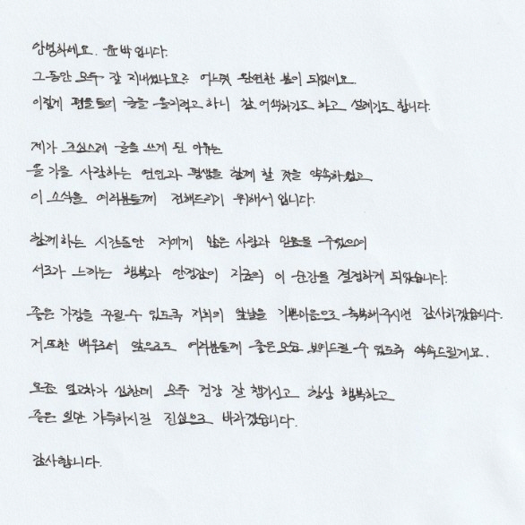 [스포츠조선닷컴 김준석 기자] 배우 윤박이 손편지로 결혼 소식을 전했다.