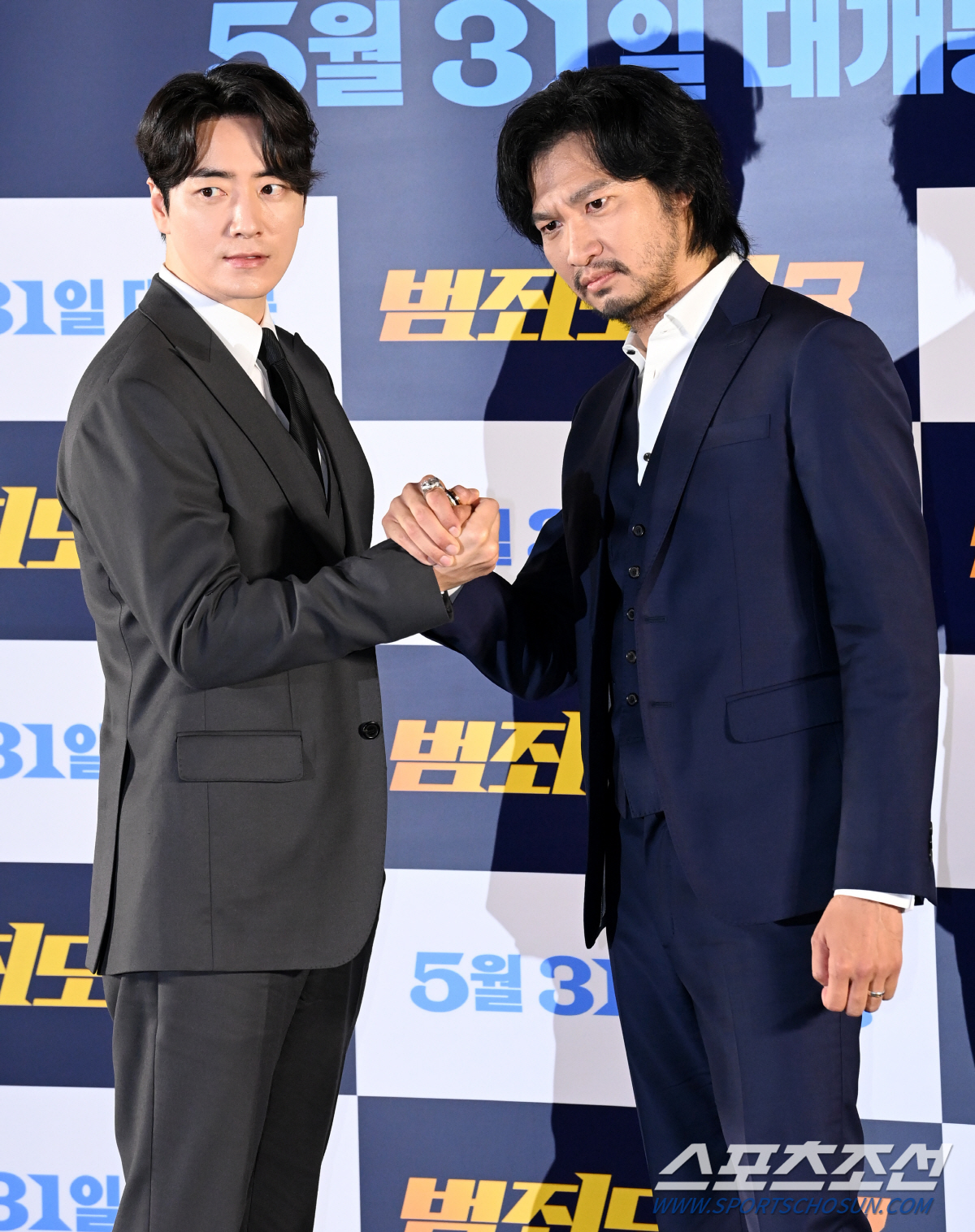 영화 '범죄도시3'의 제작보고회가 9일 메가박스 코엑스에서 열렸다. '범죄도시3'는 대체불가 괴물형사 마석도(마동석)가 서울 광수대로 이동 후, 신종 마약 범죄 사건의 배후인 주성철(이준혁)과 마약 사건에 연루된 또 다른 빌런 리키(아오키 무네타카)를 잡기 위해 펼치는 통쾌한 범죄 소탕 작전을 그린 영화다. 이준혁과 아오키 무네타카가 포즈를 취하고 있다. 허상욱 기자wook@sportschosun.com/2023.05.09/