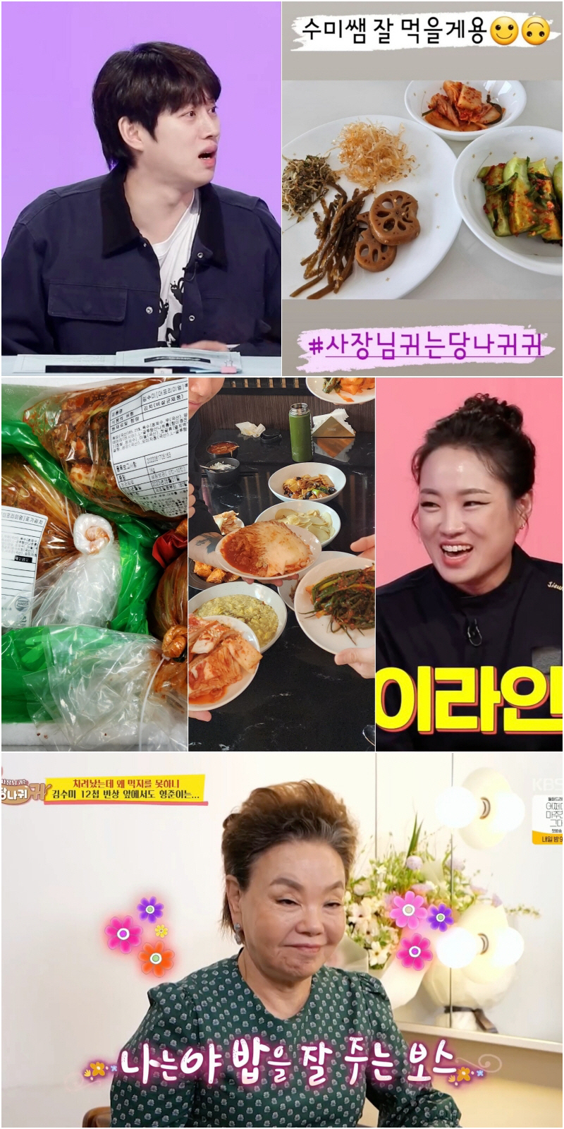 특히 김수미는 김희철이 도시락 먹방 영상을 보면서 군침을 흘리자 혼자 사는 그가 행여 반찬을 잘 챙겨 먹지 못할까 직접 담근 파김치를 집으로 보내줬다는 후문. 방송에서는 실제 김수미가 보내준 파김치와 함께 식사를 하는 김희철의 인증샷이 공개되기도 했고 김희철은 자신의 SNS에 "수미쌤 잘 먹을게용"이라며 고마움을 전했다.