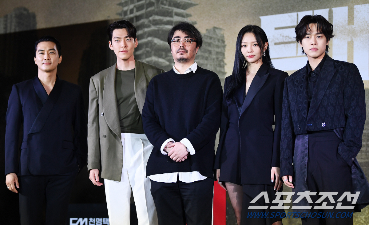 넷플릭스 시리즈 '택배기사' 제작발표회가 10일 서울 영등포구 프로보크서울에서 열렸다. 송승헌, 김우빈, 조의석 감독, 이솜, 강유석이 포토타임을 갖고 있다. 영등포=박재만 기자pjm@sportschosun.com/2023.05.10/
