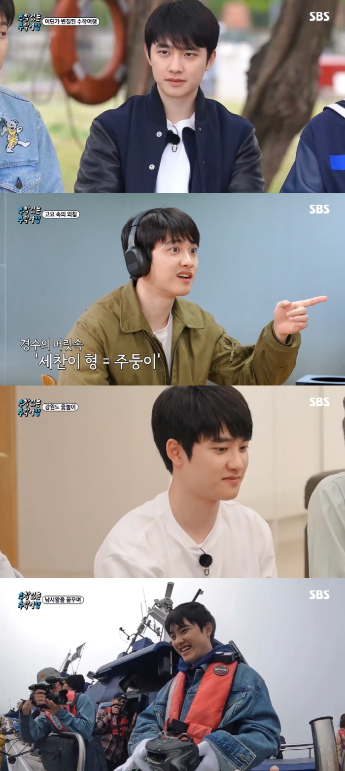 도경수가 출연하는 SBS '수학 없는 수학여행'(이하 '수수행')은 여섯 남자들이 여행지에서 각종 미션과 게임을 펼치는 버라이어티 예능으로, 지난 4월 27일 방송분부터는 일본 홋카이도 여행 이후 한층 돈독해진 출연진들의 강원도 여행 에피소드가 매주 공개되고 있다.