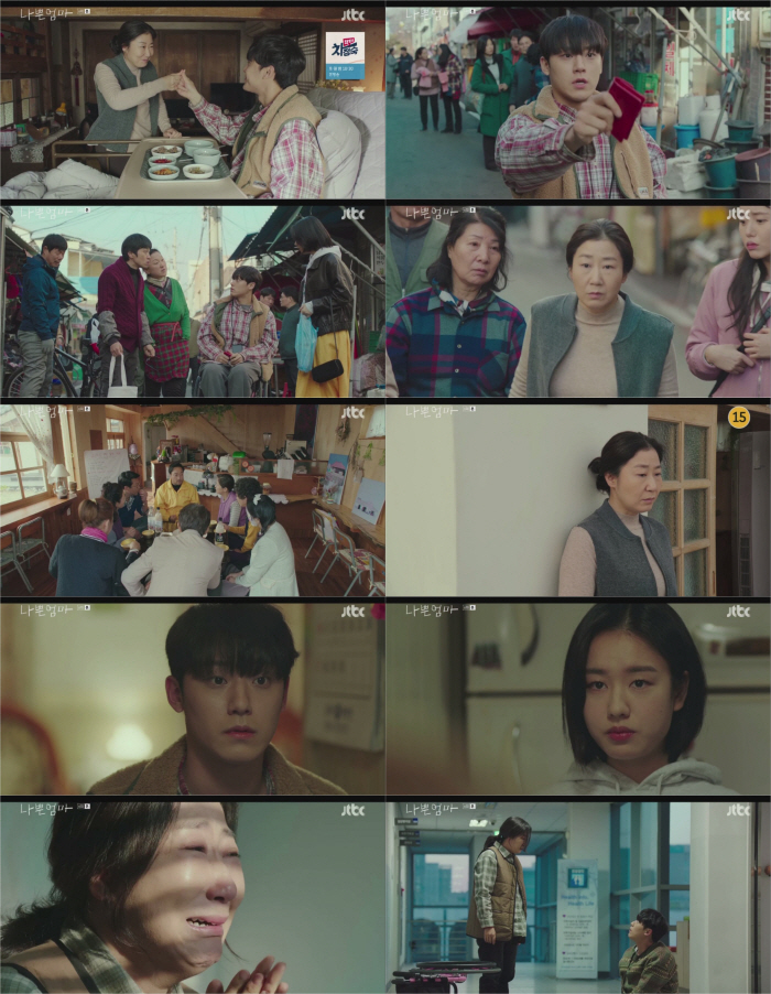 이날 누구보다 악착같이 살았던 '나쁜 엄마' 영순이 예기치 못한 암 선고로 한순간 무너져 내렸다. 그럴 리 없다고 별일 아닐 거라고 믿고 싶었지만, 자신이 없는 세상에 혼자 남겨질 강호를 생각하면 그럴 수 없었다. 의사 앞에 무릎을 꿇고 울며 빌며 "살려 달라"고 애원하고 호소하는 영순의 눈물은 삶에 대한 미련이 아닌, 뜨거운 모정 때문이었다. 이제 더욱이 자신의 빈자리를 크게 느낄 아들에게 다시 한번 모질고 냉정해질 수밖에 없는 영순의 변화는 가슴 저릿했다.