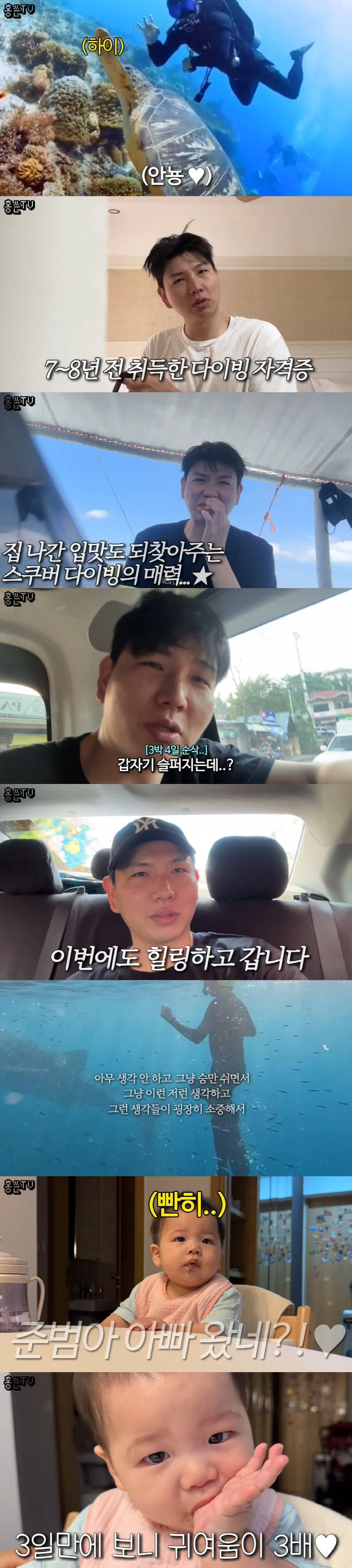 마지막까지 알차게 즐긴 제이쓴은 "사람들이 '다이빙 하면 뭐가 좋아?'라고 묻는데 사색할 수 있는 시간이 되게 많다. 물속에서 아무 생각 안하고 그냥 숨만 쉬면서 이런 저런 생각하고 그런 시간들이 굉장히 소중하다. 혼자만의 여행을 행복하게 하다간다"고 했다.