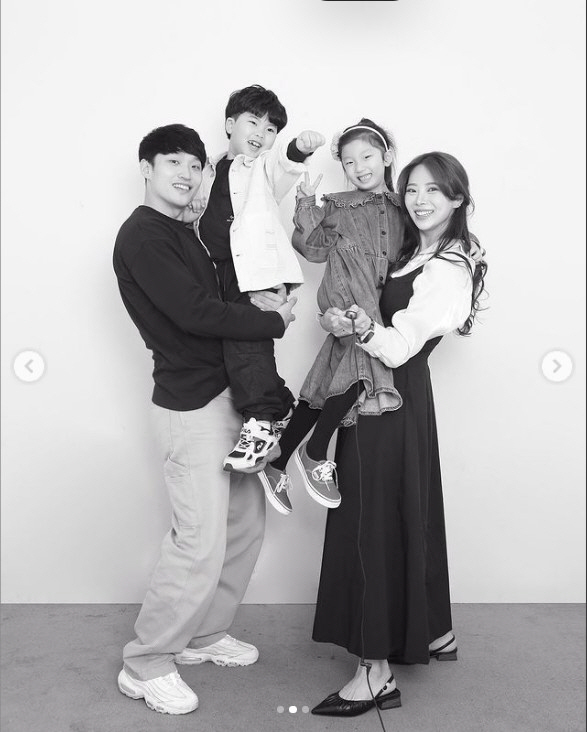 사진 속에는 각자의 아들과 딸을 서로 안고 가족사진을 완성했고, 실제 가족같은 분위기가 시선을 모은다.