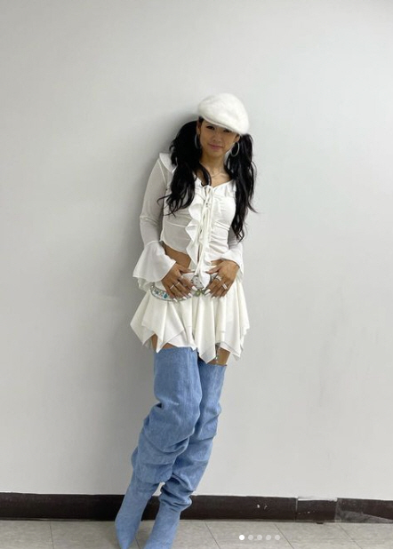 사진 속에는 마치 2003년으로 돌아간 듯한 당시 '헤이걸' 착장을 그대로 재연한 이효리의 모습이 담겨 있다. 앙고라 재질의 베레모 스타일 모자와 양갈래 긴 머리, 레이스 가득한 타이트한 레이스 상의 파격적인 부츠 등이 과거 이효리를 떠올리게 했다.