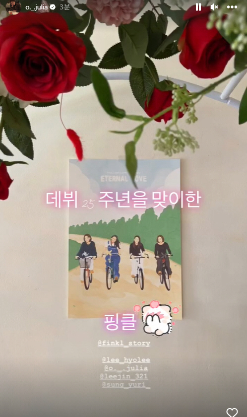특히 이 날은 핑클로 데뷔한지 25주년 되는 날. 옥주현은 나란히 자전거를 타고 가는 핑클 4인방의 삽화를 공개하며 자축하기도 했다.