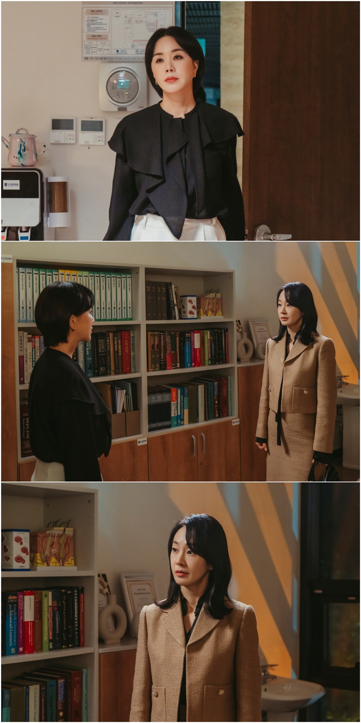 JTBC 토일드라마 '닥터 차정숙'(연출 김대진·김정욱, 극본 정여랑, 제작 ㈜스튜디오앤뉴·SLL·JCN) 측은 14일, 차정숙(엄정화 분)과 최승희(명세빈 분)의 '숨멎' 대치를 포착했다. 남편 서인호(김병철 분)와 최승희의 관계를 알게 된 차정숙이 그를 찾아간 이유는 무엇일지 궁금해진다.