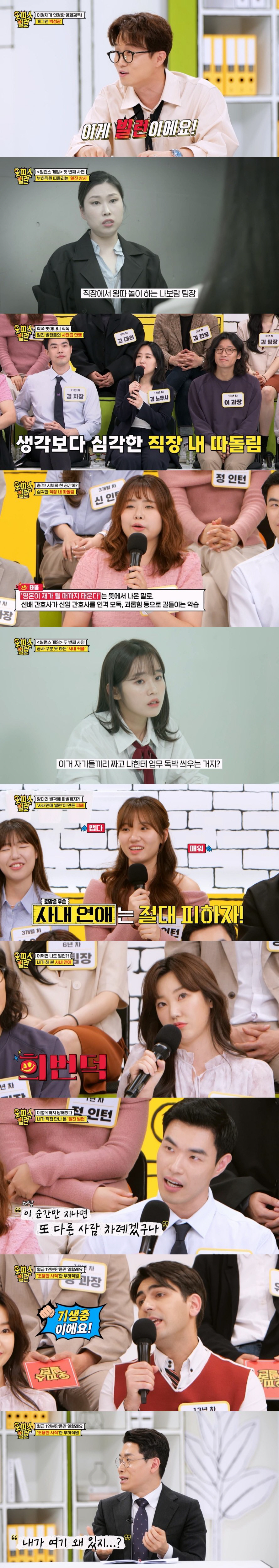 '나솔 옥순' 고초희 차장은 "썸 탈 때는 주변 사람들이 모를 줄 알았는데 회사 복사기도 알더라. 과거 팀장님이 '걔(썸남)랑 붙어 다니지 마라'라고 주의를 주셨는데 괜히 반감이 들어 '제가 일 실수한 건 없지 않냐. 친하게 지내는 동료일 뿐이다'라며 반박했다. 그때의 저 반성한다"라며 '사내 연애 빌런들'이 왜 '빌런'인지에 깊이 공감했다. 불명예의 전당에는 둘 중 압도적인 투표수를 자랑한 '일진 빌런'이 등극했다.
