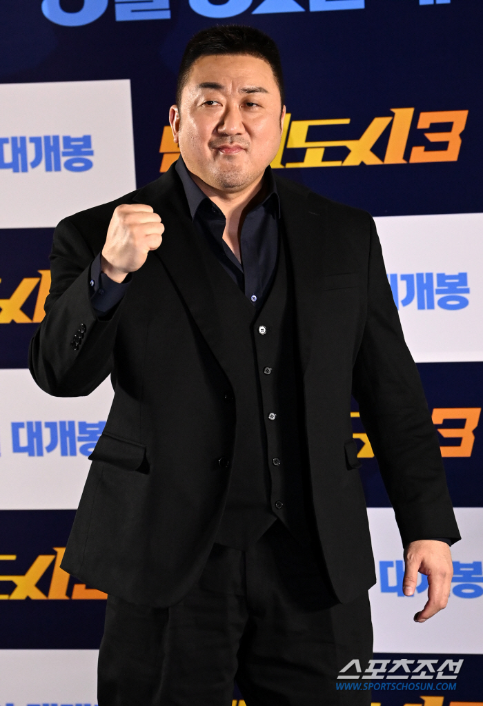'범죄도시3'는 대체불가 괴물형사 마석도(마동석)가 서울 광수대로 이동 후, 신종 마약 범죄 사건의 배후인 주성철(이준혁)과 마약 사건에 연루된 또 다른 빌런 리키(아오키 무네타카)를 잡기 위해 펼치는 통쾌한 범죄 소탕 작전을 그린 영화다. 마동석이 포즈를 취하고 있다. 허상욱 기자wook@sportschosun.com/2023.05.09/